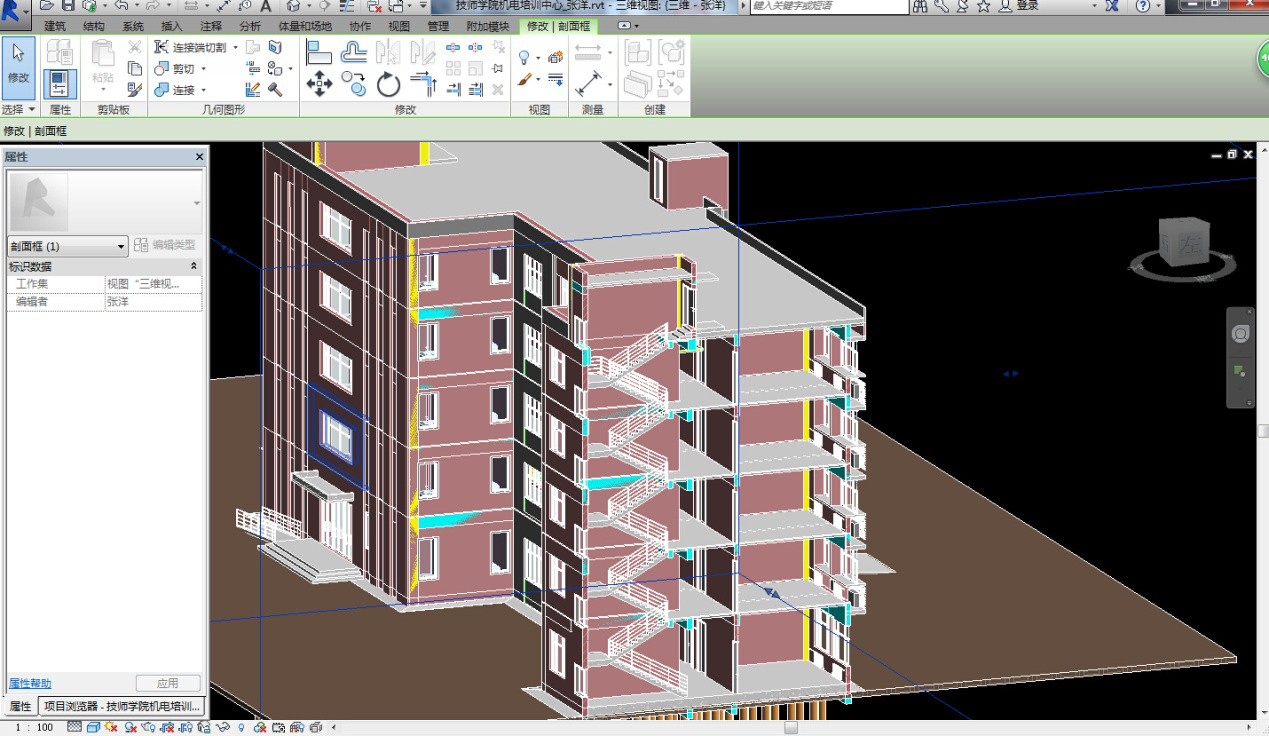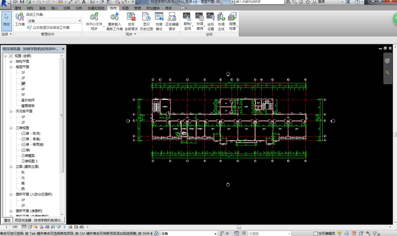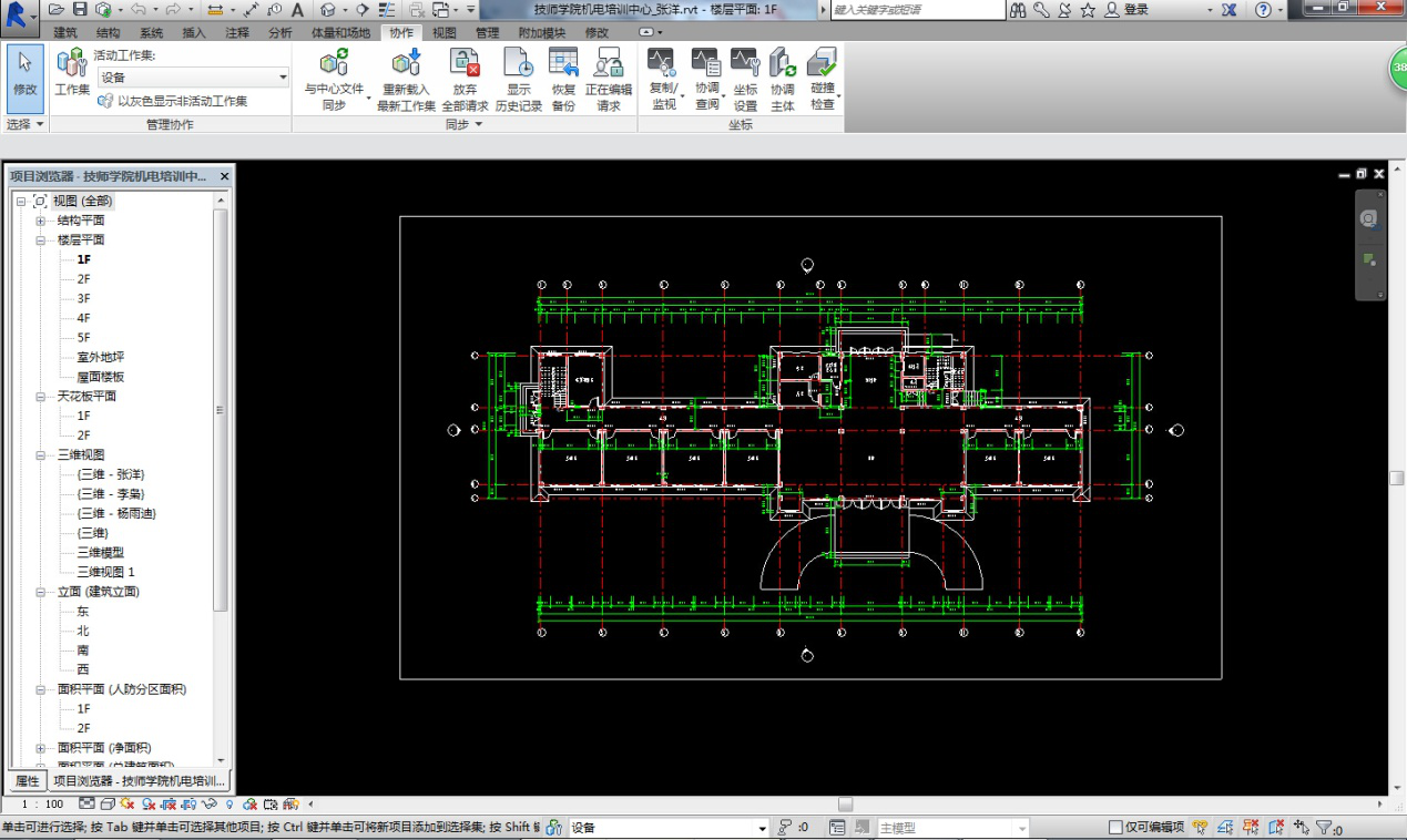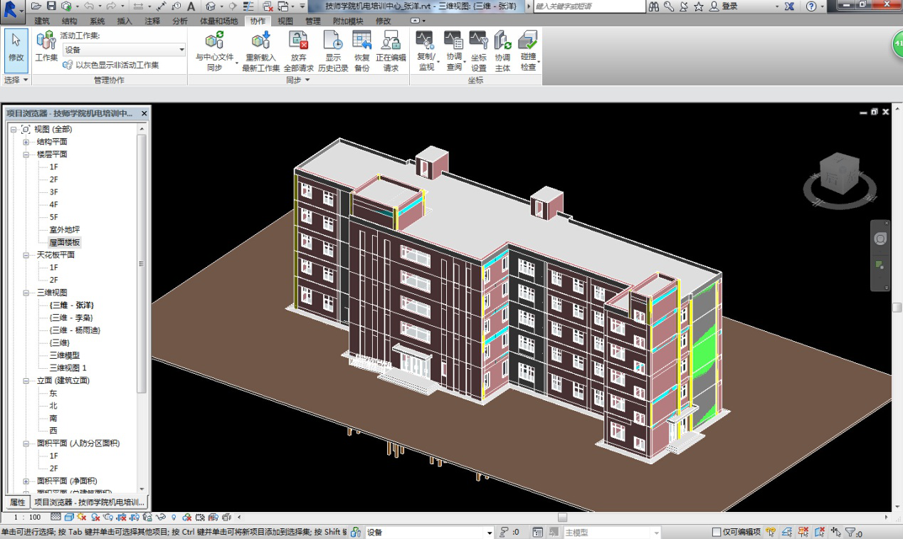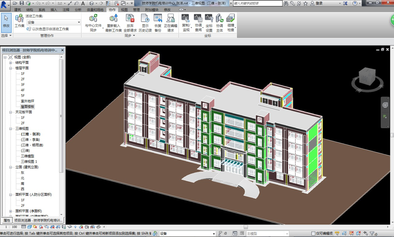 2、 小組成立以來,積極參與各種與BIM相關的學習與活動,整體掌握了Revit設計軟件,為了使小組的學習及研究能真正應用到實際工作和工程中,小組各專業(yè)成員利用業(yè)余時間使用Revit完成了對已出施工圖項目的重新設計。