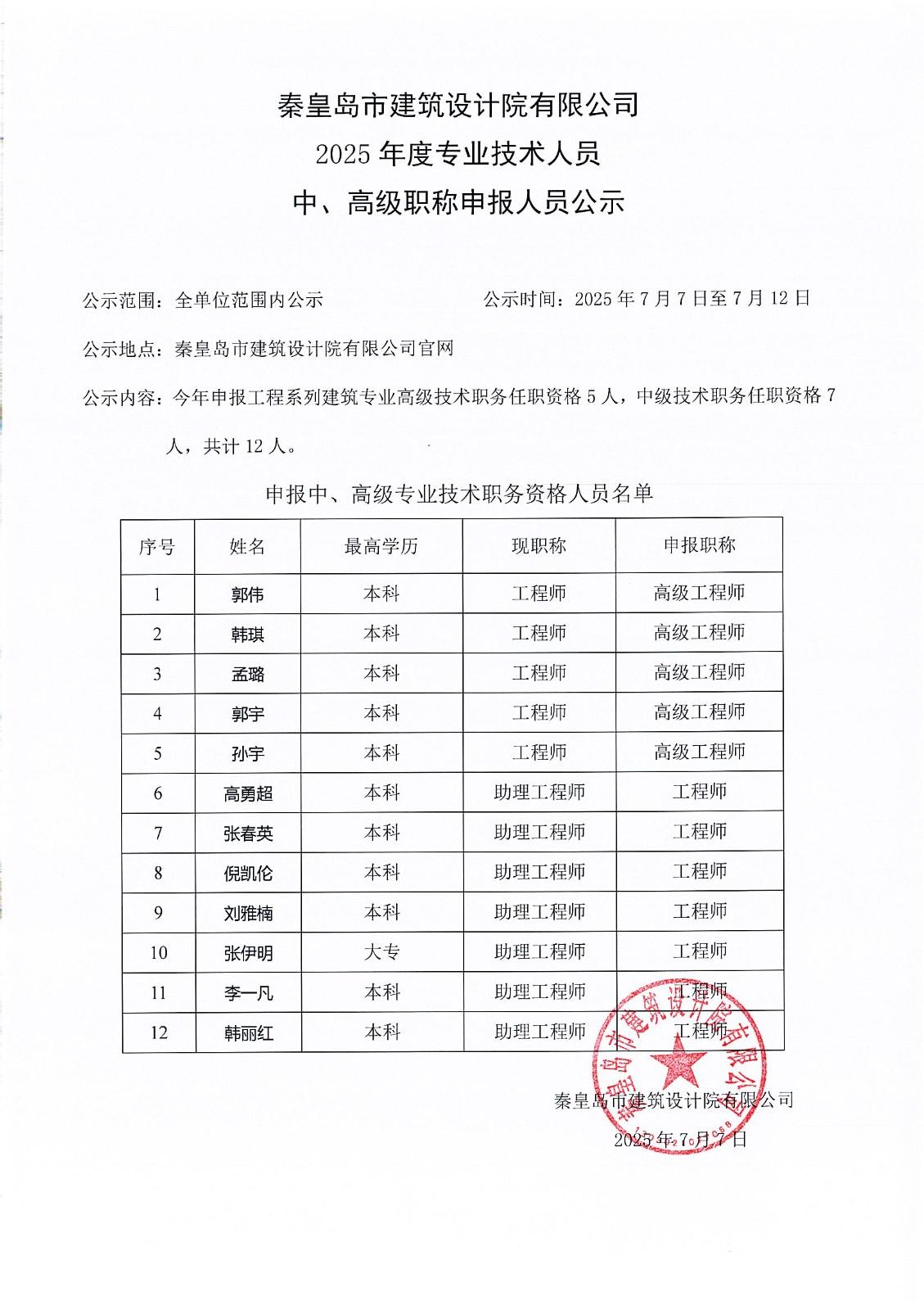 2025年職稱公示